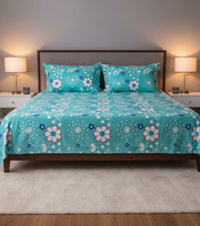 Aqua Bloom Floral Fantasy – cotton Bedsheet Set 03 - Single